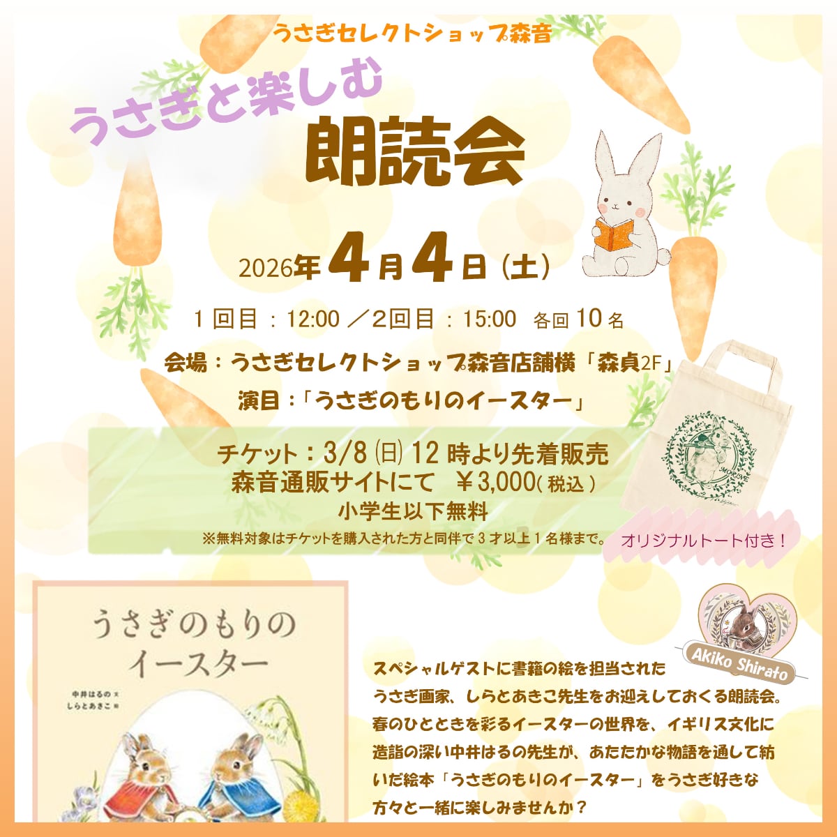 【3/8㈰12時販売開始】4/4開催「うさぎと楽しむ朗読会」チケット