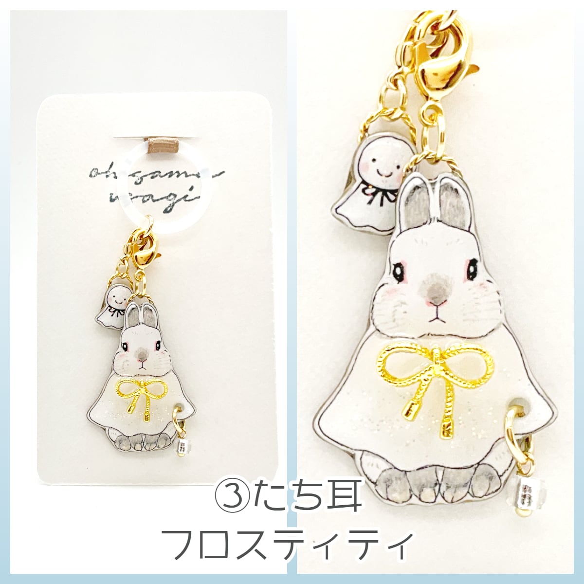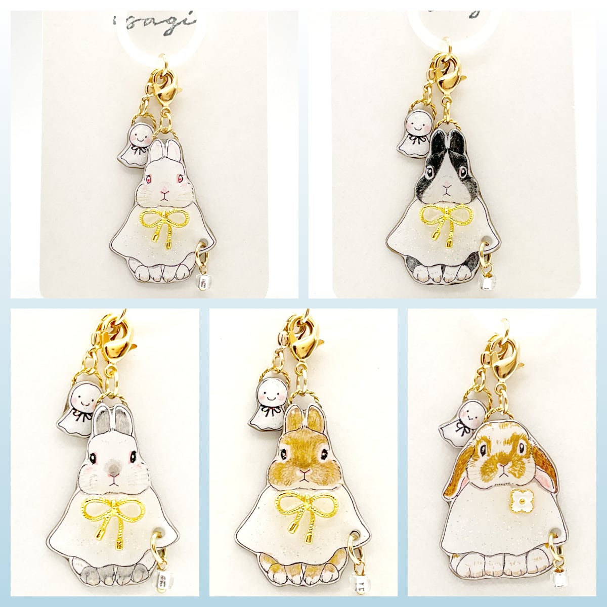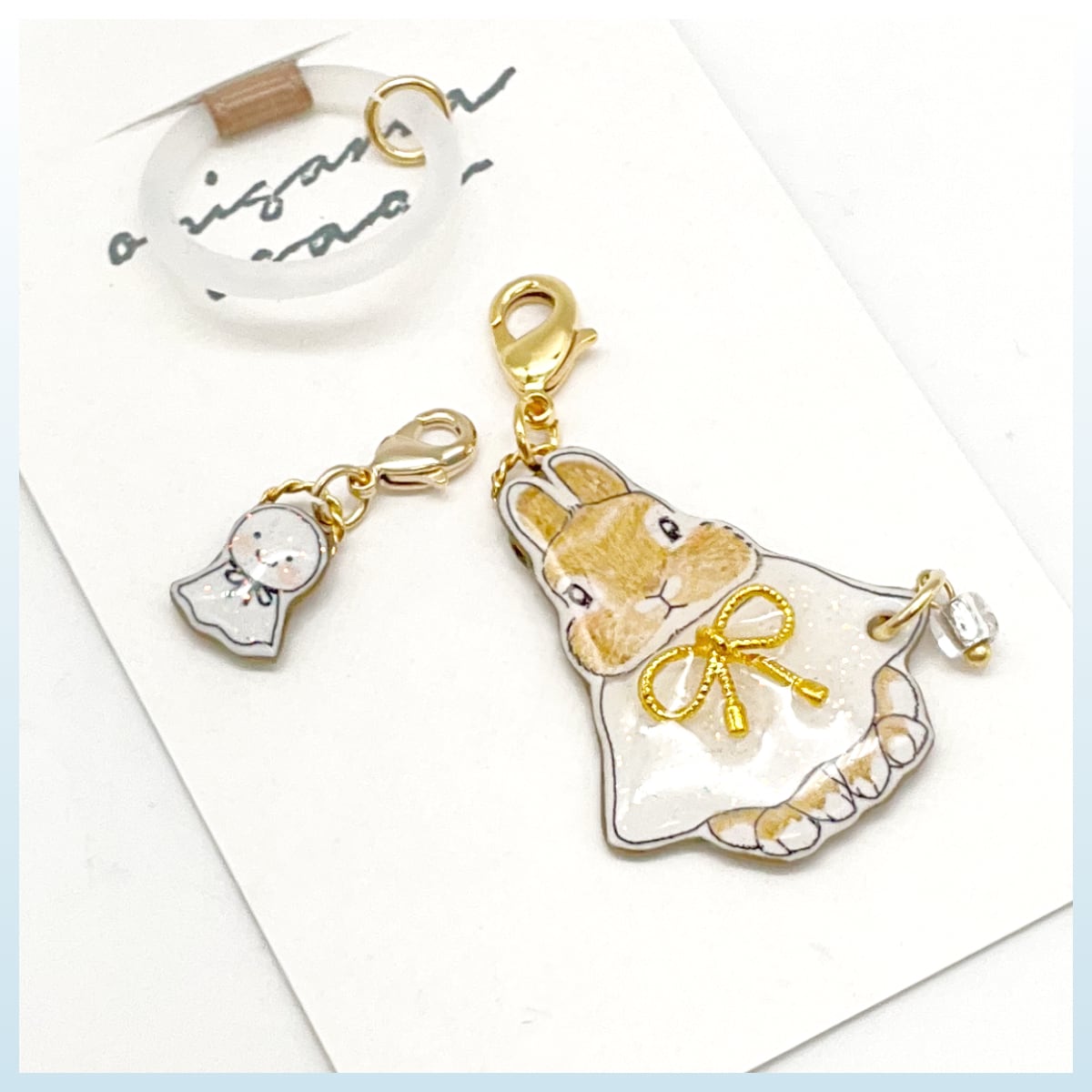 ・うさぎ、てるてる坊主本体と、接続している金具が丸カンに変更。