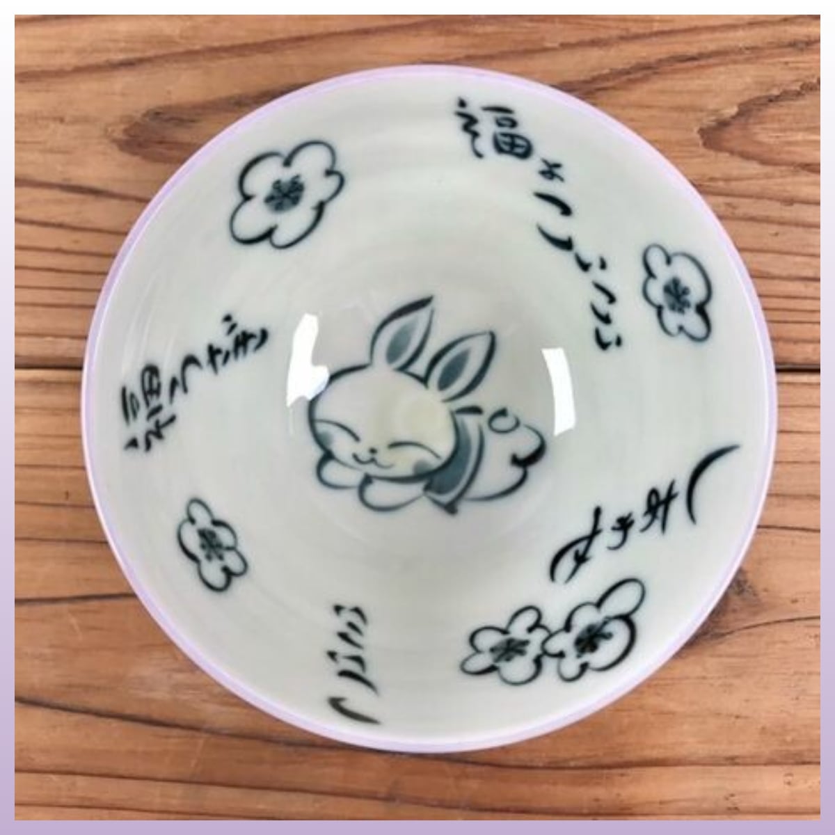 美濃焼の福うさぎお茶碗、大サイズです♪