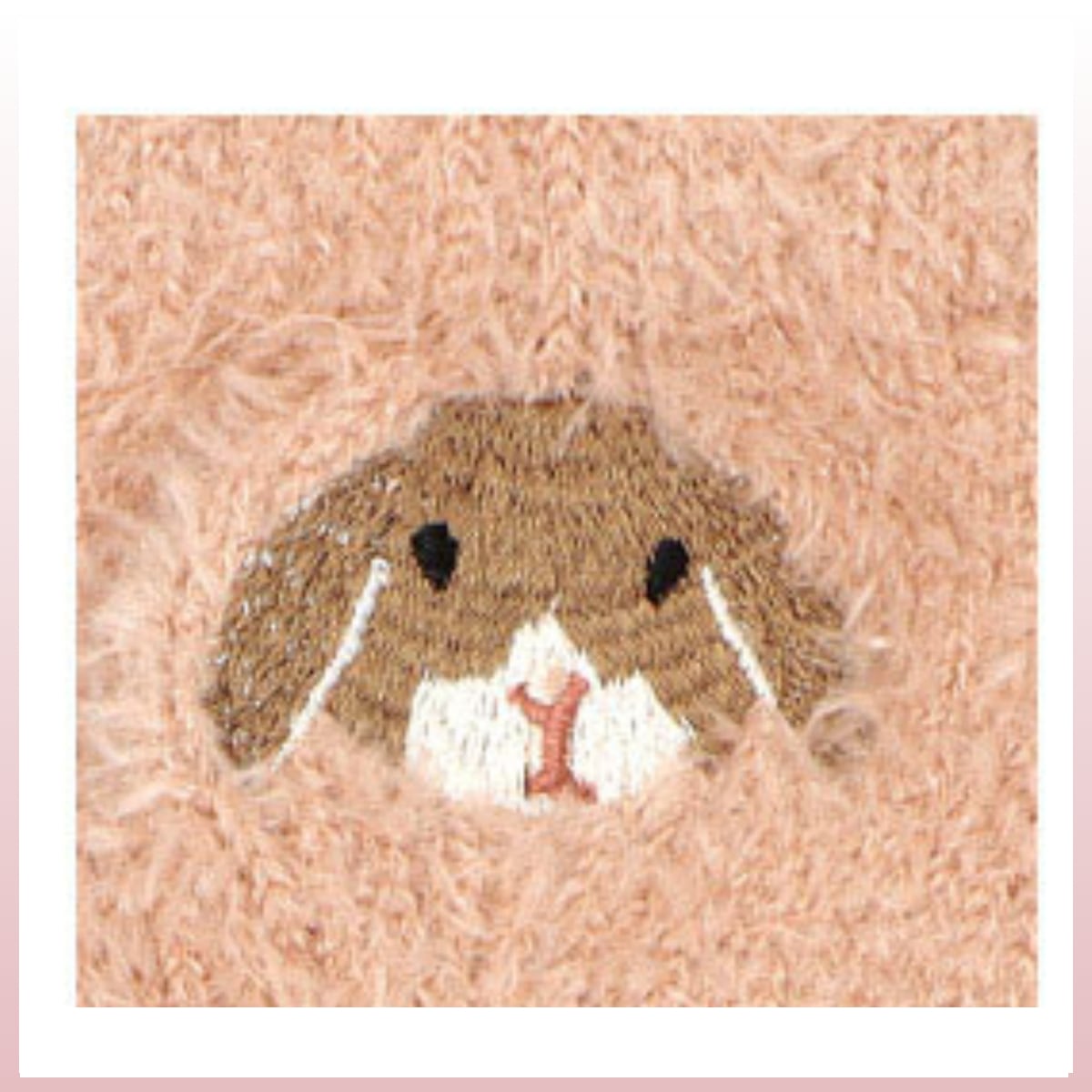 柔らかい色合いと、たれ耳うさぎのワンポイント刺繍に癒されます♪