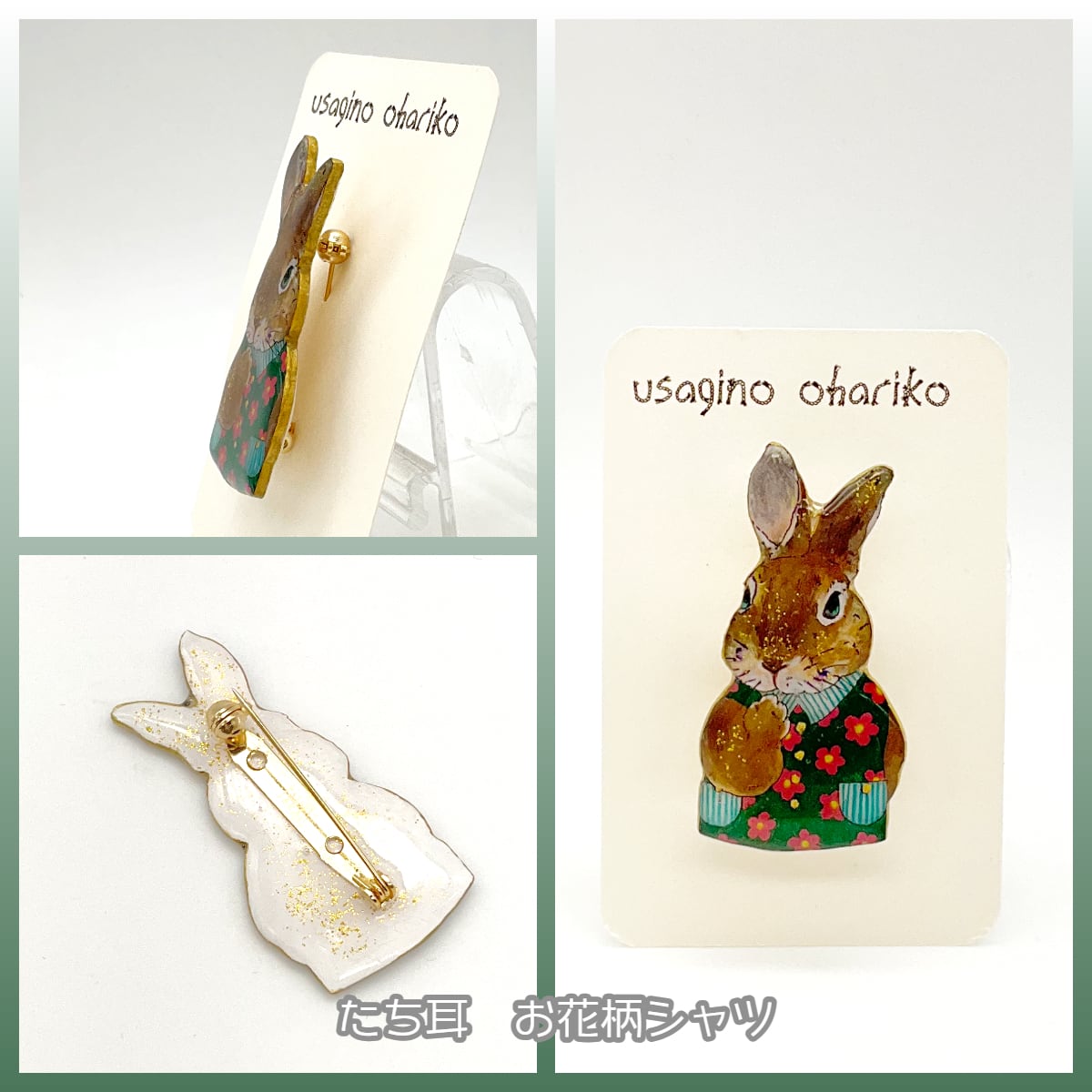 たち耳 お花柄シャツ 約5.5cm×2.8cm