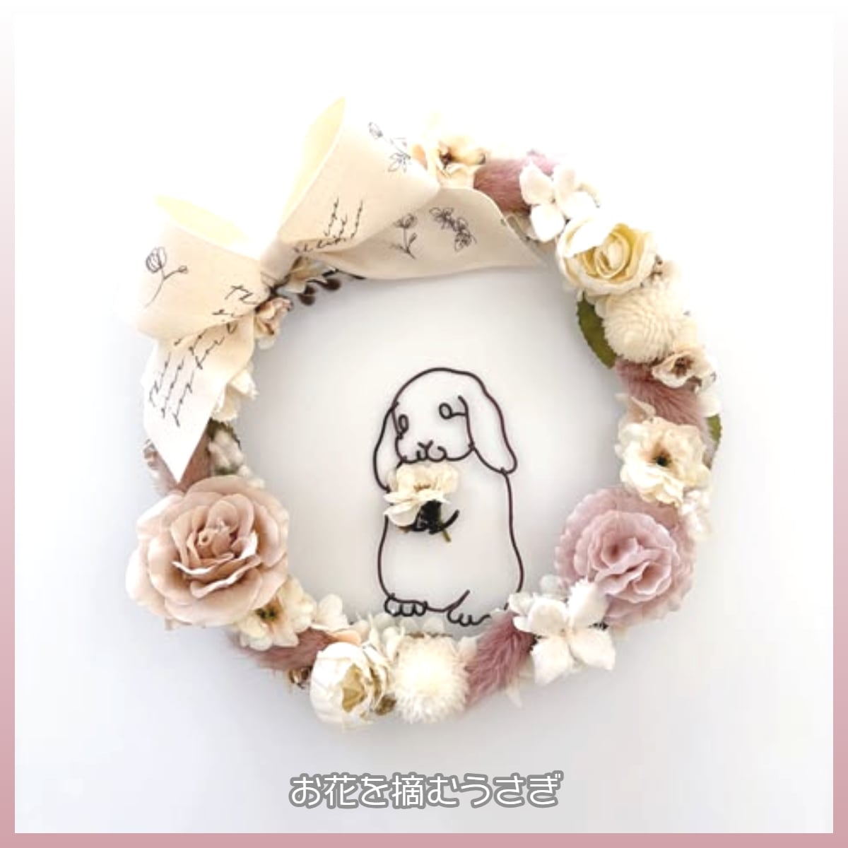 お花とうさぎのリボンリース。