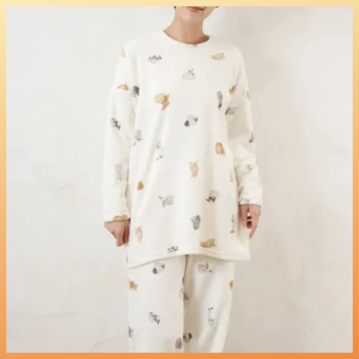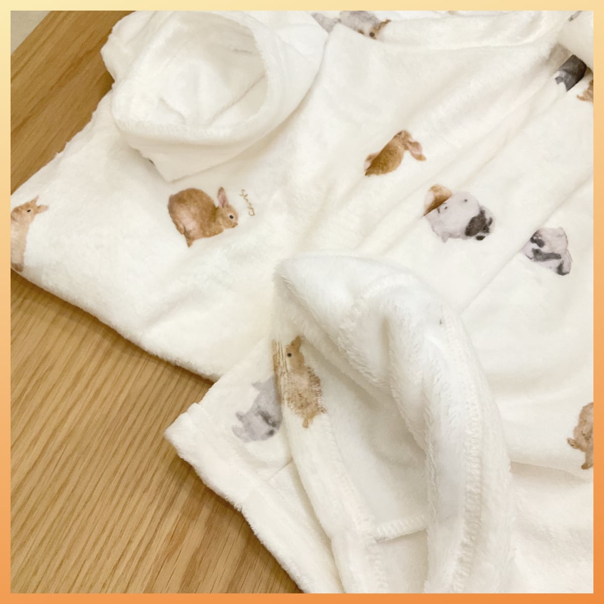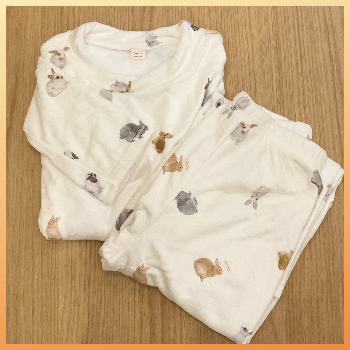 うさぎ柄をデジタルプリントで表現したルームウェア。