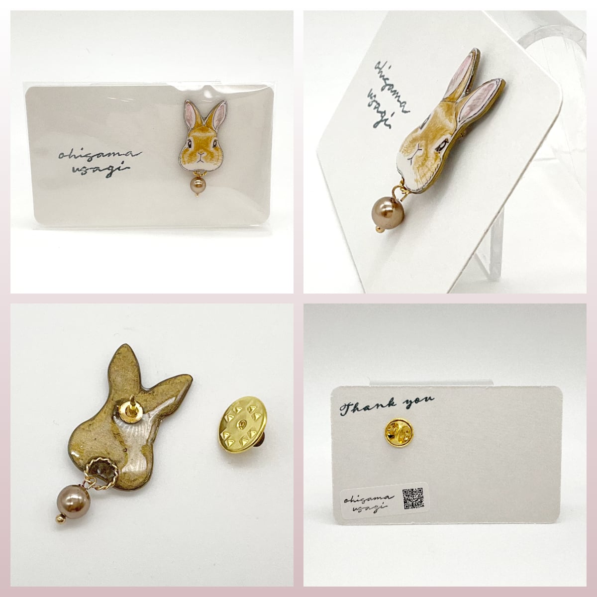 ohisamausagi ゆらゆらパールのピンバッジ うさぎ