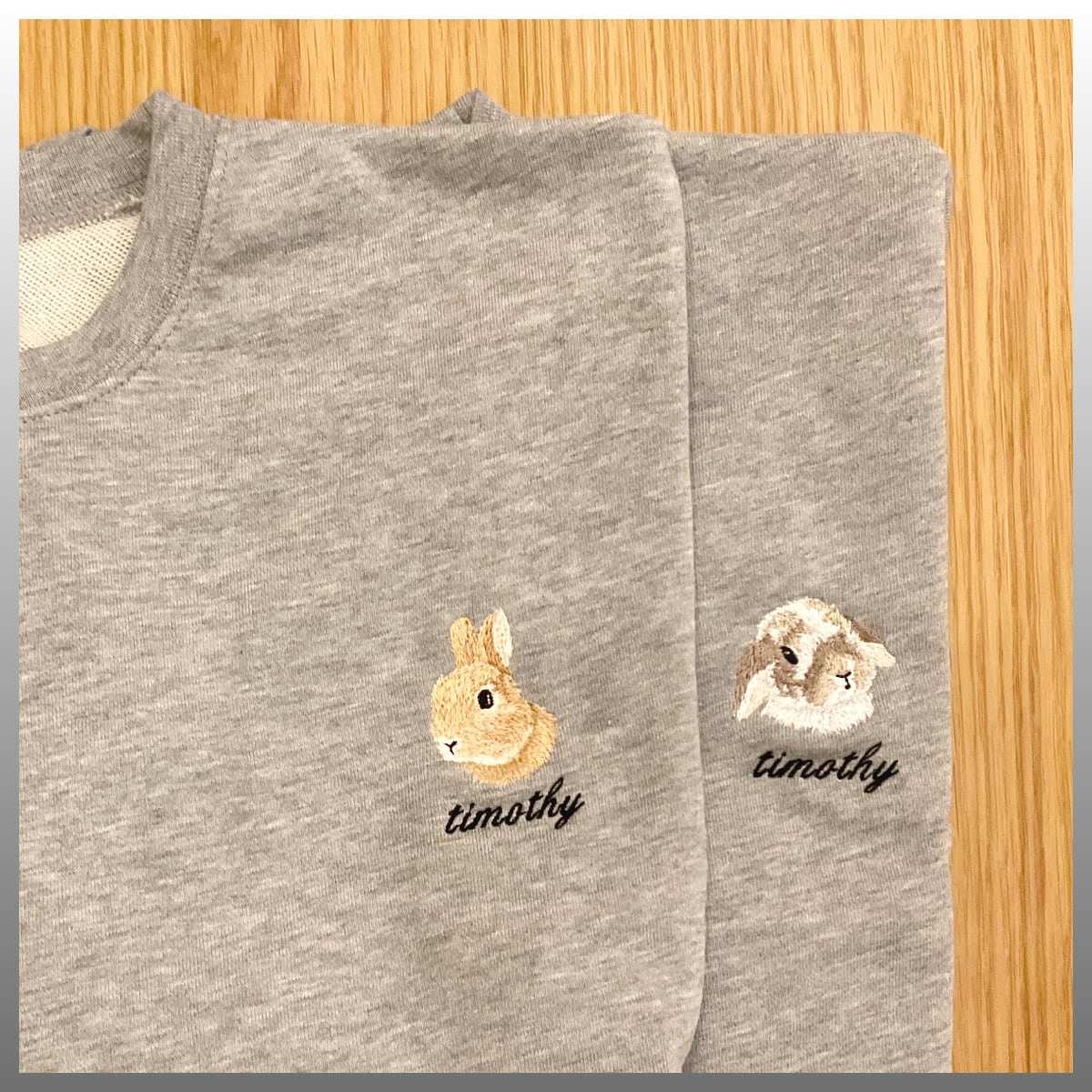 うさぎのミシン刺繍作家Shijimi Factoryさんの刺繍スウェット。