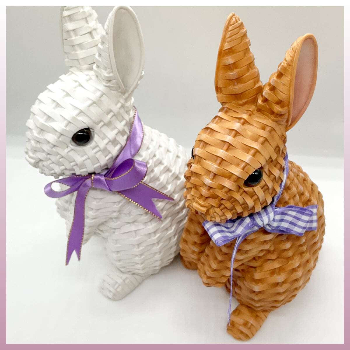 【再入荷♪】WooBia 籐編み風お座りウサギ オブジェ ブラウン