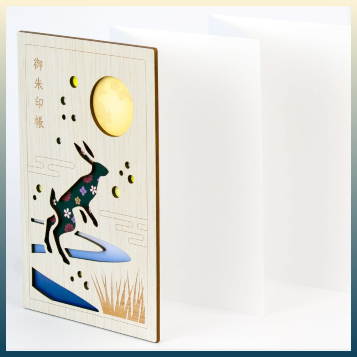 レーザー加工を施した木素材で表紙を仕立てた永善のオリジナル御朱印帳。