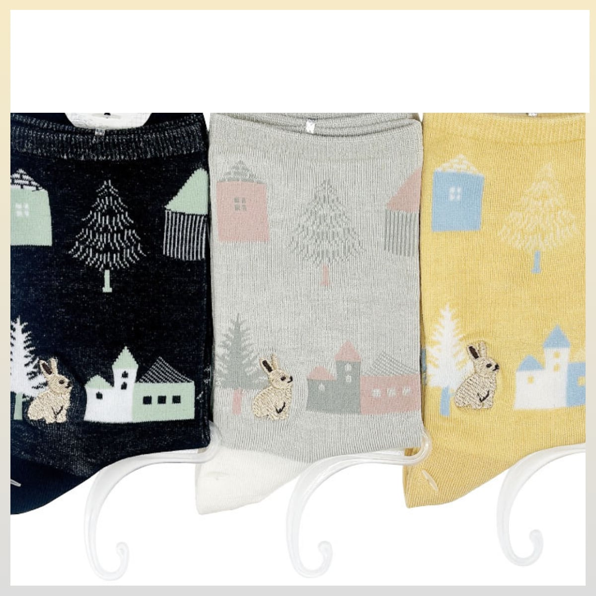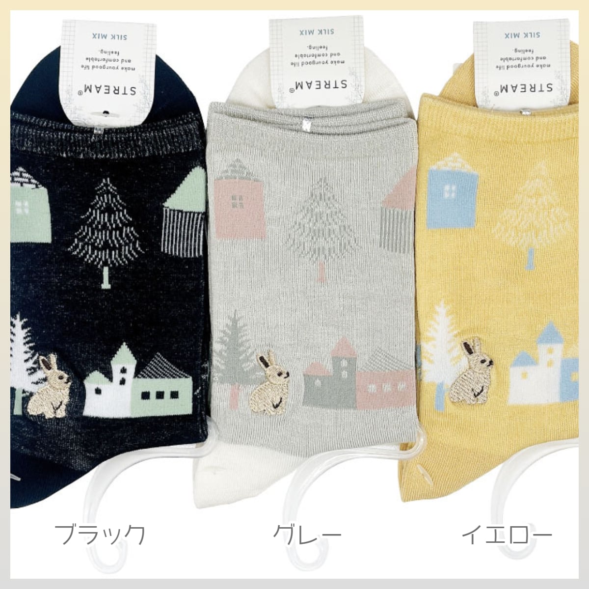 クルーソックス 刺繍ソックス 森の家 うさぎ
