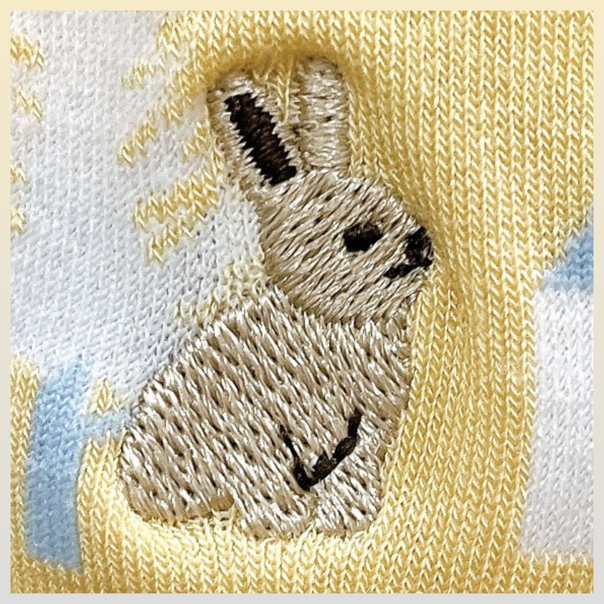 うさぎの刺繍がワンポイントアクセントのクルー丈ソックス。