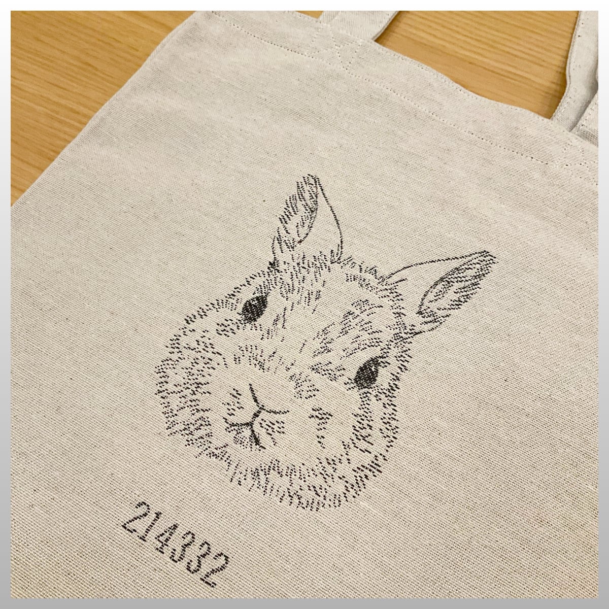 柔らかく、軽い生地にシンプルながらうさぎの顔面