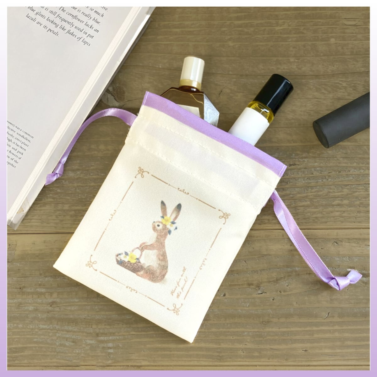 豆巾着 RESSA 花飾るうさぎ