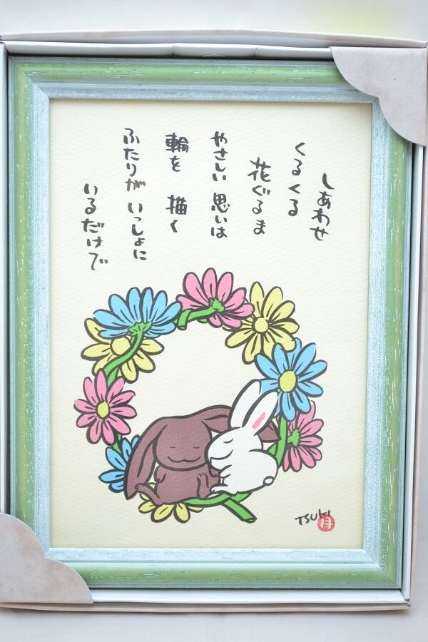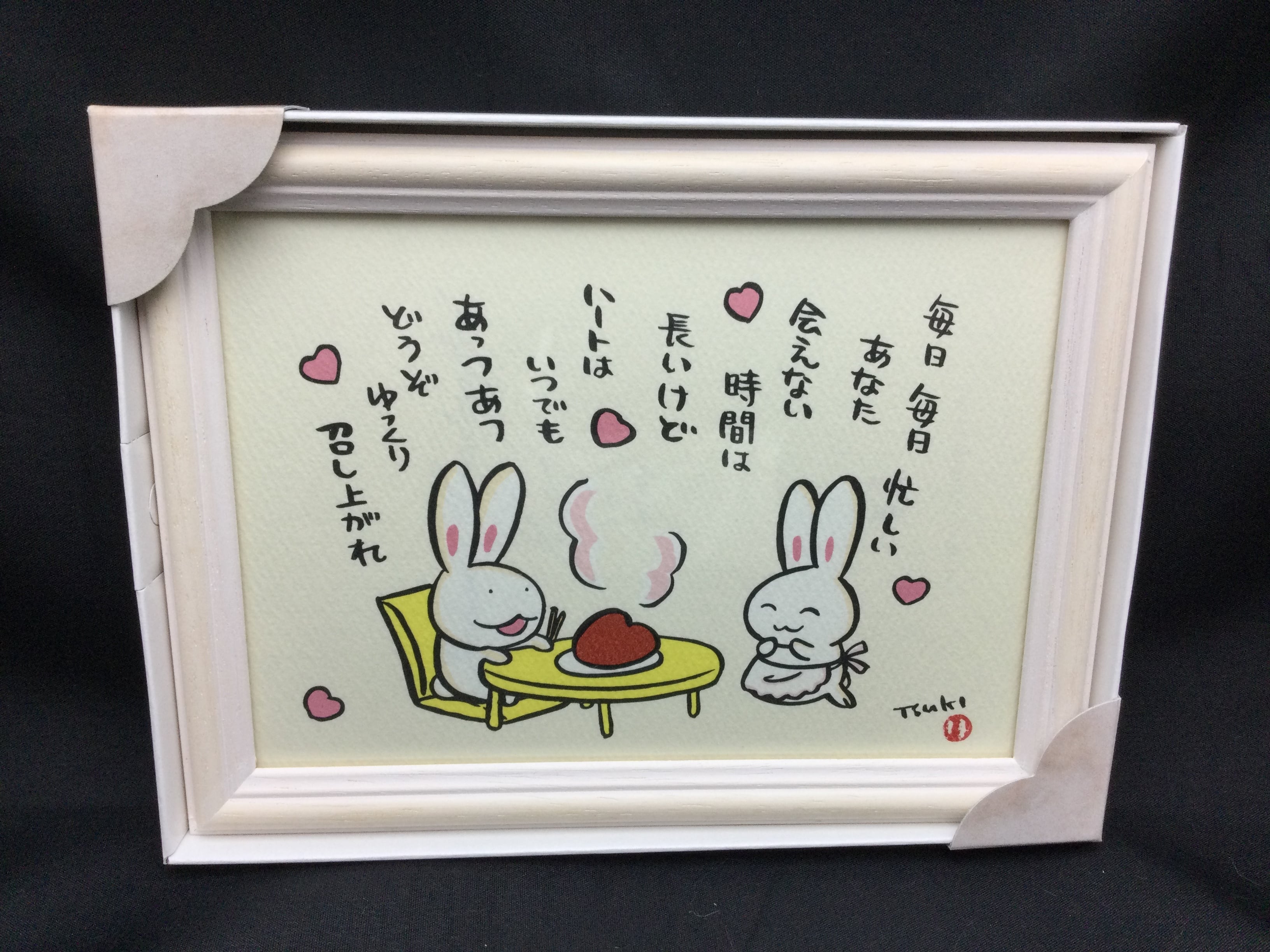 西村月 額装 うさぎ達のメッセージ