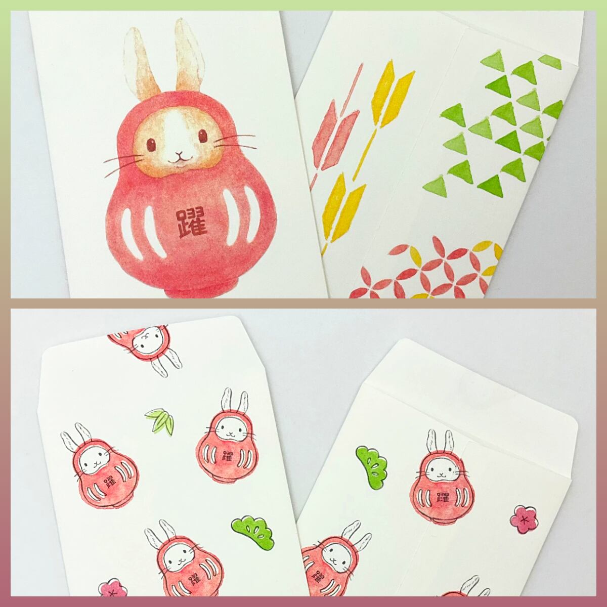 Atelier Abi(アトリエアビ) ポチ袋 だるまうさぎ 3枚入り