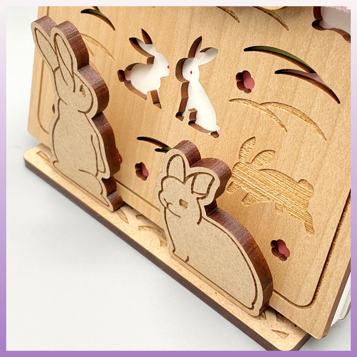 パーツを差し込んで組み立てたら御朱印帳を立ててうさぎパワースポットの完成!