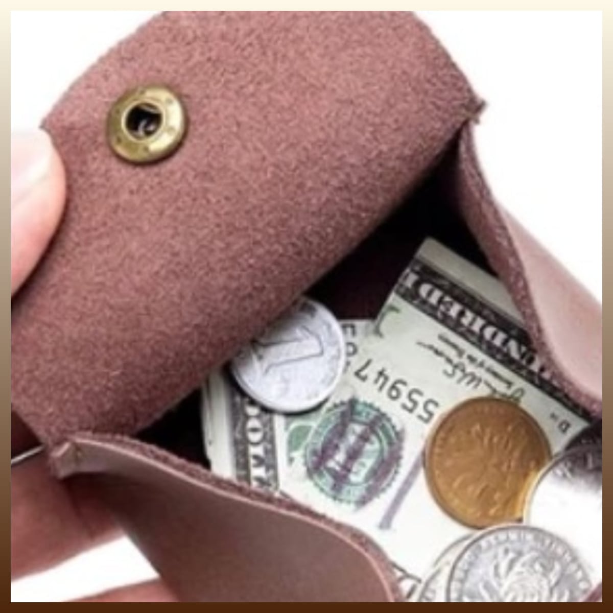 手作りされたシンプルなデザインのコインケースに